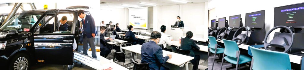 新入社員の教育研修では一定期間の法定研修、タクシー乗務開始後も定期的に研修会(定例研修会・新人営業研修会・事故防止研修会・無線営業研修会等)を開催しフォローアップを行っております