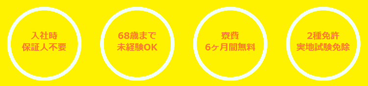 雇用延長制度を設けていますので定年以降も現役で頑張っていただけます - ・2種免許の実地試験免除、養成の方でも費用は当社負担します