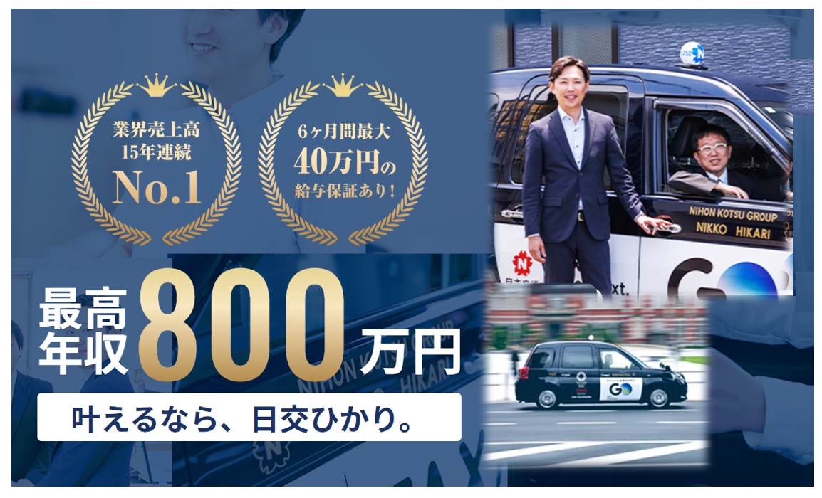 業界最大手の「日本交通グループ」の強力なバックボーンで営業できるので「高収入として稼ぐ」ことが出来ます