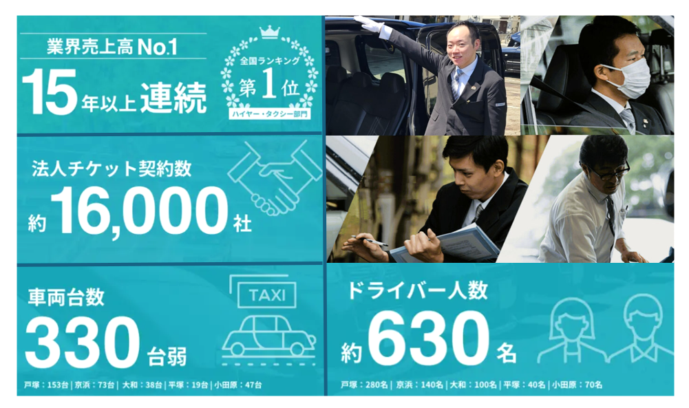 代表取締役は齋藤浩二氏。本社は神奈川県横浜市戸塚区名瀬町1152に所在し、「サービスの良いタクシー」として神奈川マーケットで選ばれることを企業理念に掲げています。